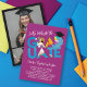 Let's celebrate the GRADUATE. This trendy unisex graduation party invite/announcement design features a cool cutout of a bold and modern GRADUATE text on a magenta purple background. Your own personalized photo will show through the cutout window of the GRADUATE typography accented with a moveable black mortar board / graduation cap.