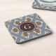 Cool grey brown ikat tribal pattern monogram coaster