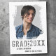 Cool, modern grunge style, 1 photo graduation announcement cards. This unique, custom design features your personal photo, name, graduation year and high school, college or university name painted on a background of white. The back of the card contains further information about the graduate.