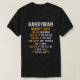 My 11 yo wore adult XL (5’7” 165#). The 8yo is small framed. She wore adult small and tied it in the back. Grandma wore adult large with long sleeve shirt underneath. Tall girl adult medium. Dark haired male adult large. Good quality dark Heather gray, Gildan brand shirt. -it was next up from basic choice and cost about $20 per shirt. Not too thick or thin. Washed and dried well, no major shrinkage. Not see-through. Can wear a bra under it fine. Screen print is just as shown and well done, front and back.