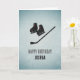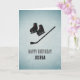 This one's for the hockey fans. An ice look background creates a striking contrast with the painted metal effect motif of ice skates and a hockey stick. Add any name and you can change the greeting too if it's not a birthday or you want unique text. Your own message inside is accompanied by a smaller version of the front graphic.
