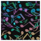 Cool Hued Music Notes Colorful Black Fabric