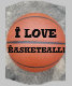 Orange basketball with black strips against a grey concrete background. I Love Basketball is written in black text with funny bouncing eyeballs. Original Photography and Quote © 2012, 2017 TamiraZDesigns.
