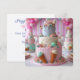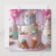 FUN ICE CREAM THEMED KIDS BIRTHDAY LAYER CAKE ON THE FRONT OF THE CARD. COMPLETELY EDITABLE COPY ON THE BACK.