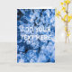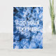 Closeup view of the natural ice. A pile of small pieces of ice of blue color. Customizable greeting card. You can change or delete two template texts on the front and inside the card.