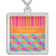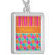 A cool Pendant Necklace to personalize, with a traditional Islamic pattern in bright pink, orange, turquoise blue and light green, teamed with matching stripes. Part of the Posh & Painterly "Islamic" collection. Choose your font, shape and finish.