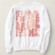 Introducing the Cool It's Me Hi I'm the Bride It's Me Personalized Sweatshirt, a trendy and cute addition to your bachelorette party wardrobe. The sweatshirt comes in a cool peach coral pink shade, making it the perfect choice for a stylish and fun celebration. The front and back print feature a retro wavy text with the option to customize it with your name, adding a personalized touch to your outfit. This groovy bachelorette theme party tee is not only fashionable but also a hilarious choice for a memorable night out.