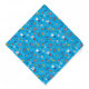 Cool blue bandana printed with a soccer football themed pattern of cartoon shirts, shorts, flags, trophies, goal nets and footballs