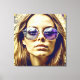Cool ai art depicting a woman in purple hippie sunglasses with a sharp reflection.