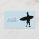 This is a cool surf instructor light blue color business card with a surfer silhouette next to your name, title and phone number on one side and website and email on the other side.