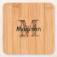 Cool light brown bamboo wood print Monogram Square Paper Coaster