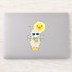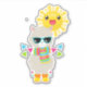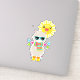 Vinyl decal / contour sticker with a cool looking llama wearing some dark sunglasses. Dressed in a colorful striped scarf and fun little boots. A bright yellow sun with a happy kawaii face in the background. Whimsical colorful triangles surround this fun loving llama.
