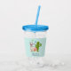 A personalized acrylic tumbler illustrated with a cute llama wearing heart-shaped sunglasses. Some stars, a mushroom and a green cactus complete the illustration. Whimsical and cute.