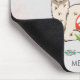 A mousepad illustrated with a cute llama wearing heart-shaped sunglasses. A red spotted mushroom, a boho arrow and a green cactus complete the illustration. Whimsical and cute.