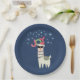 Cool Llama in Santa Hat with Snowflakes Christmas Paper Plates
