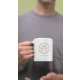 A modern rounded logo design for a stylish golf player on a white and classic mug, personalised with his name and initials.