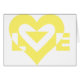 A graphic logo design, custom made. LOVE in creamy yellow.