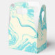 A stylish and sophisticated favor box with an elegant faux marble pattern with swirling colors in turquoise blue and cream colors.