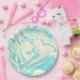Cool Marble Design in Turquoise and Cream Paper Plates