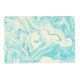 A stylish and sophisticated placemat with an elegant faux marble pattern with swirling colors in turquoise blue and cream colors.