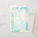 Stylish and sophisticated stationery paper with an elegant faux marble pattern with swirling colors in turquoise blue and cream colors. A semi-transparent frame with a gold border layered over top.