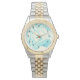A stylish and sophisticated watch with an elegant faux marble pattern with swirling colors in turquoise blue and cream colors. The clock face has art deco style numbers.