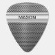 Metal looking luxury guitar picks with digitally printed silver metallic looking graphic background that gives your pick the look of an expensive pick, including monogram emblem you can personalize with any guys name or initials to make your own. Designed as a luxury gift for a guitar player, musician, or music teacher.