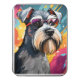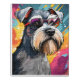 It's a Miniature Schnauzer wearing glasses. How cool is that? It's pretty cool. My dog Calypso posed for the photo that I used to paint this. I added the glasses. Schnauzer moms and dads know they aren't sitting still with glasses on for more than half a second.