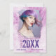 Cool, modern grunge style, double sided graduation announcement cards in shades of pink and purple. This unique, custom design features your personal photo, name, graduation year and high school, college or university name with your customizable announcement message on the back.