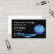 Cool and unique modern technology business cards template created with a world globe on a black background and organized template you can customize online. Presented on high quality glossy UV coated business cards stock.