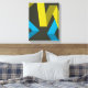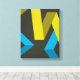 Cool, unique, trendy, urban abstract illustration pattern art made with geometric shapes flowing in three dimensional space in blue and yellow colors. Modern, bright colored graphic design artwork
