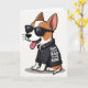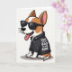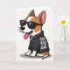 This card shows a stylized, short-legged dog sitting centered on a plain white background, giving a steady look that feels like a friendly wink ❤️. Dark sunglasses cover its eyes, adding a cool, slightly teasing edge, while its relaxed posture keeps the mood warm and approachable. It wears a black jacket with small silver studs and shiny metal details, like it dressed up to impress someone it adores. A wide grin with a pink tongue and soft pink inner ears adds a sweet contrast, turning the “tough” outfit into something affectionate and funny. Across the front of the jacket, uppercase white text is placed prominently on the chest area and reads, “MOM YOU’RE BAD TO THE BONE,” standing out sharply against the dark fabric. The fur mixes warm brown and white patches, and the simple backdrop leaves plenty of open space so the character feels like it’s posing just for her 🌼. Silver accents on the jacket catch the light around the collar and along the edges, framing the bright white lettering.