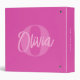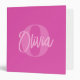 Cool Monochrome Pink Trendy Script Monogram 3 Ring Binder