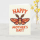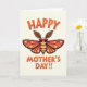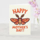 This design shows a cute, humanlike moth centered on a light cream background, drawn with a rounded golden-ochre body and wide antennae shaped like autumn leaves. Red-framed sunglasses sit on its face above a small, relaxed smile, giving it an easy, friendly charm ❤️. Its large wings spread outward in deep orange with a darker outline, and cream heart shapes scattered across them suggest a gentle closeness. The word “HAPPY” appears near the top in upward-tilting orange letters, standing out clearly against the pale backdrop. Below it, “MOTHER’S DAY!!” is set larger in matching orange with soft shading that adds a little depth. The simple layout keeps the focus on the moth, as if it’s proudly posing for someone it cares about 🌼. Small cream hearts dot both wings while the orange lettering angles upward above the moth’s head.