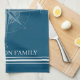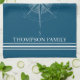 Stylish and fun, these towels are the perfect accessory to anyone's kitchen at their beach home or on their boat. The design features a blue background with a soft blue rustic compass image with white typography that can be changed to fit your family's name. Also has three stripes at the bottom. Great for any sea-loving captain and his or her family.
