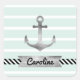 Cool Nautical Mint Stripes Anchor Personalized Square Sticker