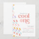 Cool One Girl's First Birthday Checkered Retro Invitation