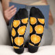 This fun Halloween socks are bright and colorful. The small print is crisp and shows the fun details. The softness of the socks feels nice on my feet and ankles. .