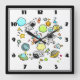 Cool Outer Space Astronauts & Rockets Pattern Square Wall Clock