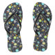 Flipflops with a cute and colorful pattern with all kinds of outer space themed elements. Images include astronauts floating around in their white space suits. Stars and planets and cool little rocket ships, spaceships, and satellites. Fun and crazy design.