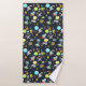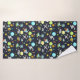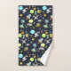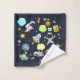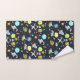 Towels with a cute and colorful pattern with all kinds of outer space themed elements. Images include astronauts floating around in their white space suits. Stars and planets and cool little rocket ships, spaceships, and satellites. Fun and crazy design.