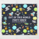 Beer labels with a cute and colorful pattern with all kinds of outer space themed elements. Images include astronauts floating around in their white space suits. Stars and planets and cool little rocket ships, spaceships, and satellites. Fun and crazy design.