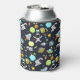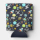 Can cooler with a cute and colorful pattern with all kinds of outer space themed elements. Images include astronauts floating around in their white space suits. Stars and planets and cool little rocket ships, spaceships, and satellites. Fun and crazy design.