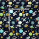 Fabric with a cute and colorful pattern with all kinds of outer space themed elements. Images include astronauts floating around in their white space suits. Stars and planets and cool little rocket ships, spaceships, and satellites. Fun and crazy design.