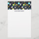 Stationery paper with a cute and colorful pattern with all kinds of outer space themed elements. Images include astronauts floating around in their white space suits. Stars and planets and cool little rocket ships, spaceships, and satellites. Fun and crazy design.