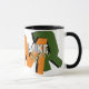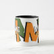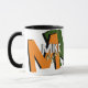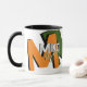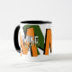 Stylish mug personalized with his name in cool font style, and with big orange and green oversized initial letters with black shadow... modern typography design...