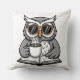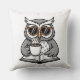 Cool Owl Reading With Coffee Throw Pillow