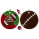 Cool Personalized Football Christmas Ornaments. Red and White or CHANGE to Your COLORS and Your TEXT. Cheap Football Gifts for Players, Football Stocking Stuffers, End of Football Season Gifts for Kids to Adults. You, or CALL Designer Linda: 239-949-9090 EST to CHANGE the COLORS, Design, Ornament to your choice of many different Ornament Shapes and Styles or your choice of THOUSANDS of other custom football gifts for boys and men.