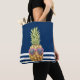 Cool Pineapple Nautical Navy Blue Striped Tote Bag