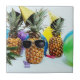 Colorful Pineapples with Party Hats and Balloons. One of the pineapples is wearing cool sunglasses.